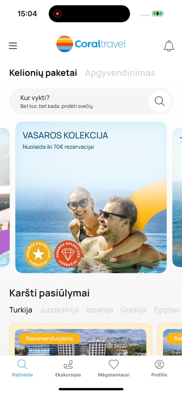 Planuok keliones su Coral Travel programėle, rezervuok, apmokėk vos keliais paspaudimais ir stebėk savo užsakymo būseną bei informaciją realiu laiku.